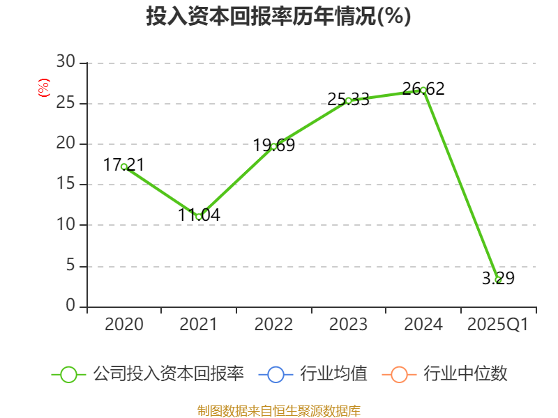 盈利能力方面, 2025年一季度公司加权平均净资产收益率为4.68%,同比下降2.37个百分点。公司2025年第一季度投入资本回报率为3.29%,较上年同期下降8.58个百分点。