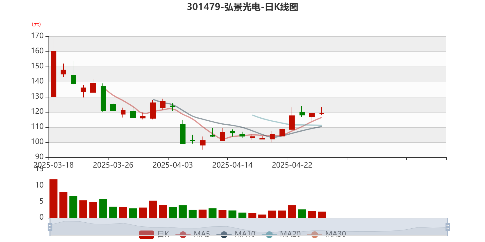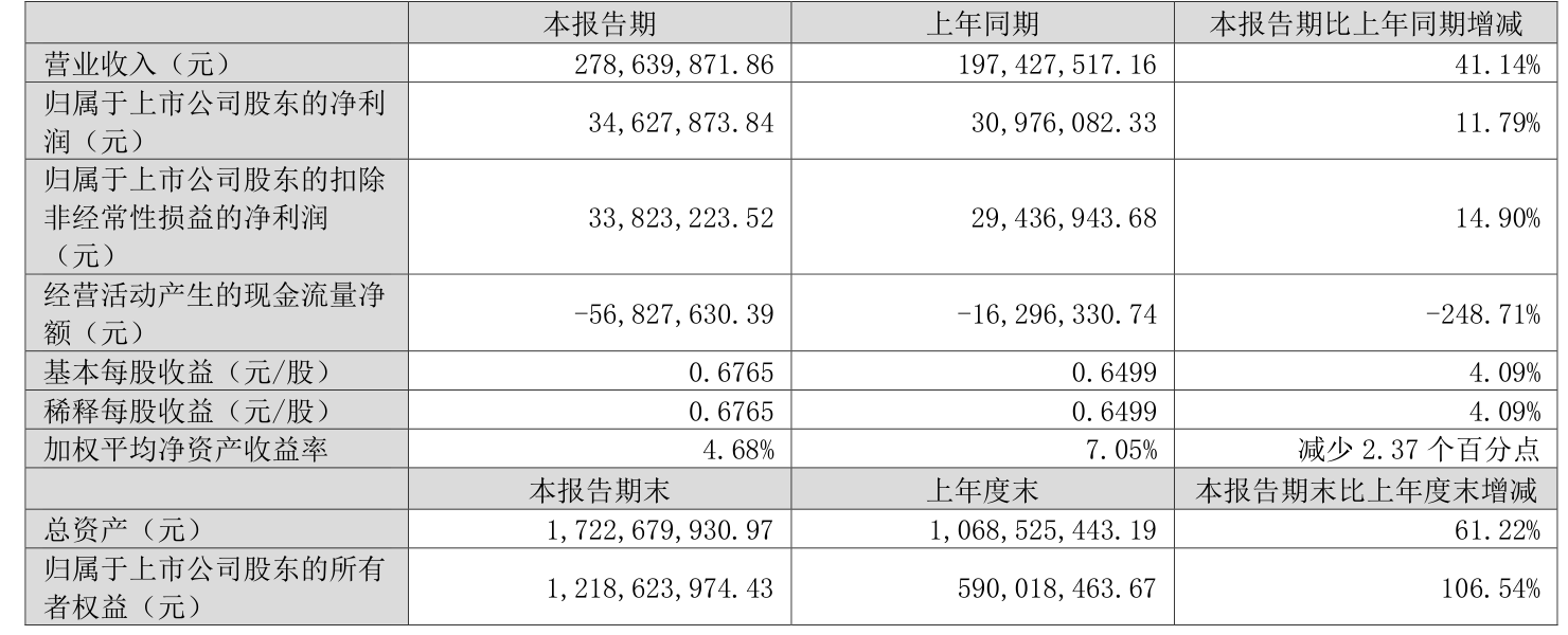 中证智能财讯弘景光电(301479)4月28日披露2025年第一季度报告。公司实现营业总收入2.79亿元,同比增长41.14%;归母净利润3462.79万元,同比增长11.79%;扣非净利润3382.32万元,同比增长14.90%;经营活动产生的现金流量净额为-5682.76万元,上年同期为-1629.63万元;报告期内,弘景光电基本每股收益为0.6765元,加权平均净资产收益率为4.68%。