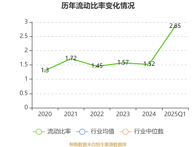 2025年第一季度,公司流动比率为2.85,速动比率为2.28。