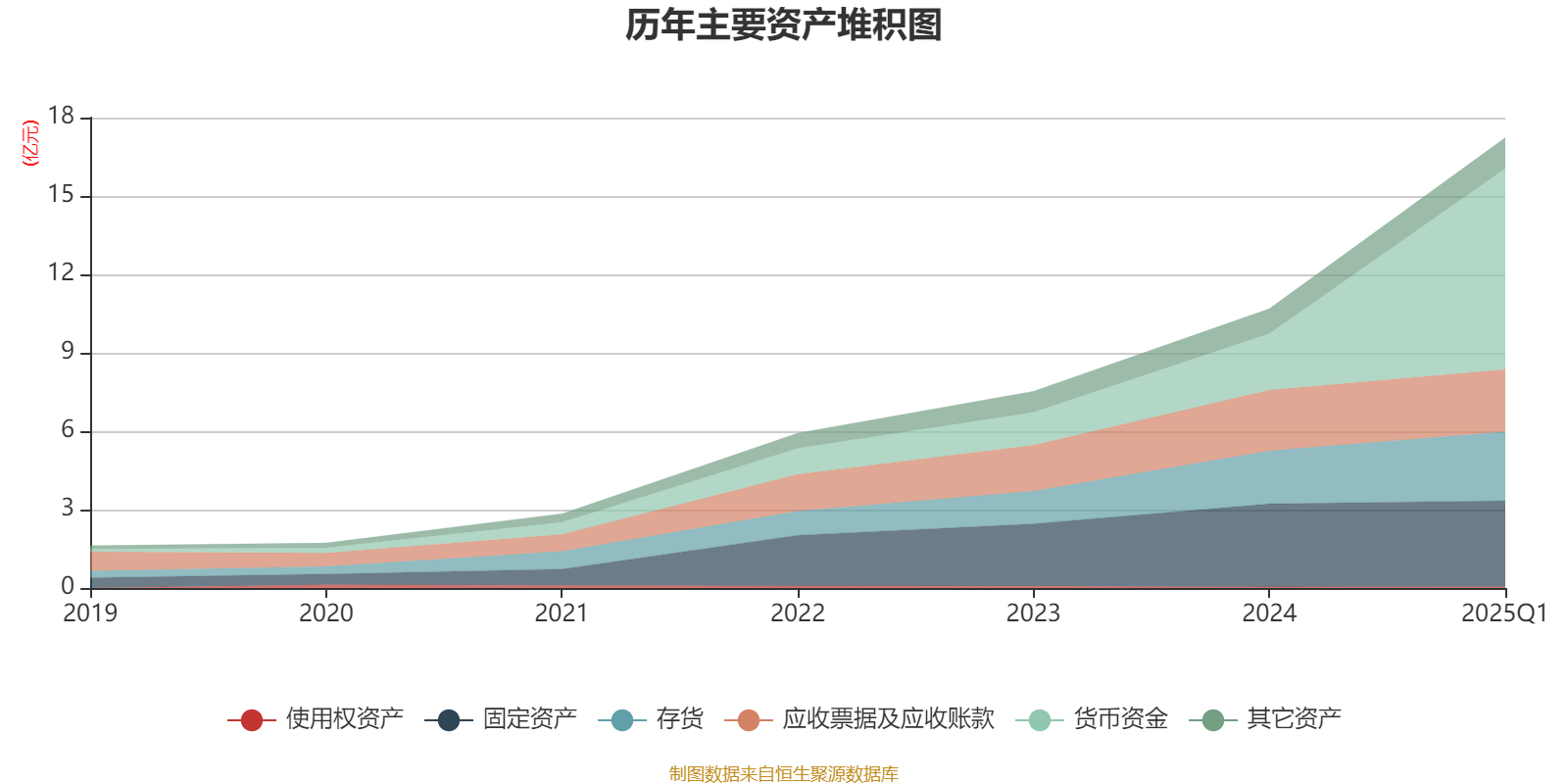 资产重大变化方面,截至2025年一季度末,公司货币资金较上年末增加256.24%,占公司总资产比重上升24.46个百分点;固定资产较上年末增加3.38%,占公司总资产比重下降10.69个百分点;应收票据及应收账款较上年末增加2.54%,占公司总资产比重下降7.89个百分点;存货较上年末增加30.1%,占公司总资产比重下降3.67个百分点。