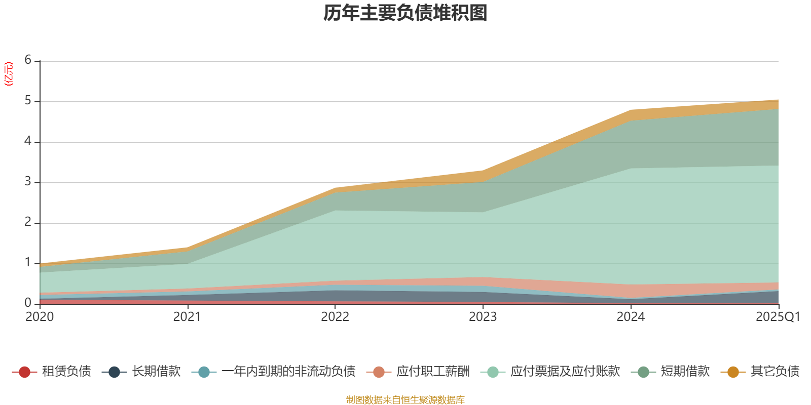 负债重大变化方面,截至2025年一季度末,公司应付票据及应付账款较上年末增加0.68%,占公司总资产比重下降10.07个百分点;短期借款较上年末增加18.57%,占公司总资产比重下降2.92个百分点;应付职工薪酬较上年末减少47.59%,占公司总资产比重下降2.09个百分点;长期借款较上年末增加204.12%,占公司总资产比重上升0.8个百分点。